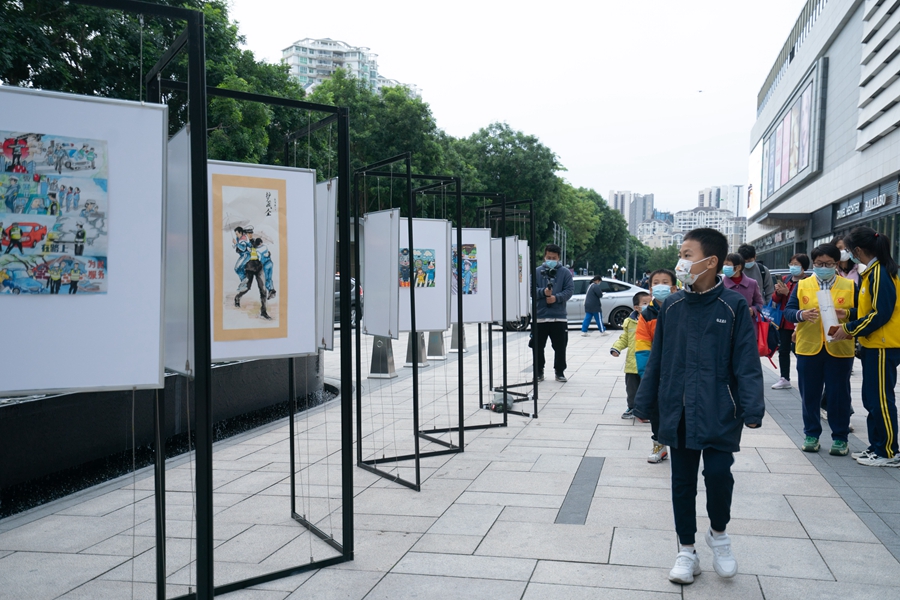 活動(dòng)現(xiàn)場(chǎng)展示的交通安全主題宣傳作品引人矚目;葜萑?qǐng)?bào)記者湯渝杭 攝