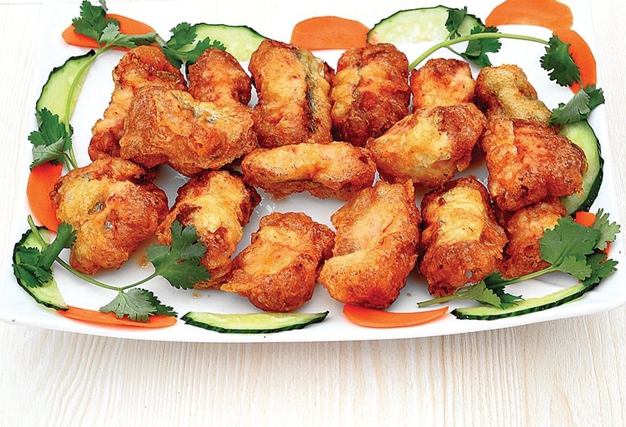 好的漁家炸鰻魚腌制時(shí)長(zhǎng)在20小時(shí)以上。記者了解到,霞涌五豐飯店在腌制鰻魚這道工序上所花費(fèi)的時(shí)間通常是疍家人的7倍左右。該飯店主廚李師傅說,漁家炸鰻魚這道菜肴之所以要提前兩天預(yù)訂,是因?yàn)樾枋孪荣I來新鮮的鰻魚,在切塊之后采用南乳醬、醬油、五香粉、鹽和水等配方腌制20小時(shí)以上,隨后再裹粉、油炸!笆巢氖欠褡銐蛐迈r是決定這道菜肴是否酥脆、鮮美的重要因素。”李師傅說。