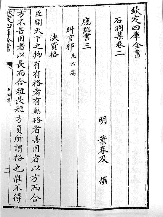 《四庫全書》全文著錄葉春及《石洞集》 楊春來供圖