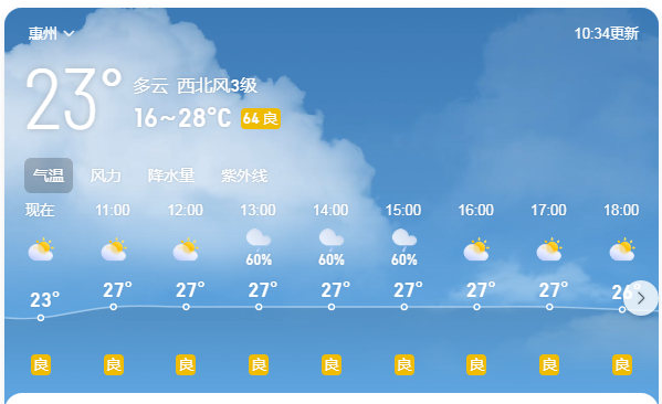 【惠州一周天氣趨勢】
