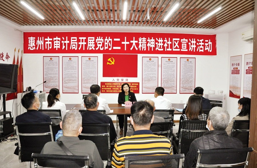 市審計(jì)局開(kāi)展黨的二十大精神進(jìn)社區(qū)宣講活動(dòng)。惠州日?qǐng)?bào)記者張藝明 攝
