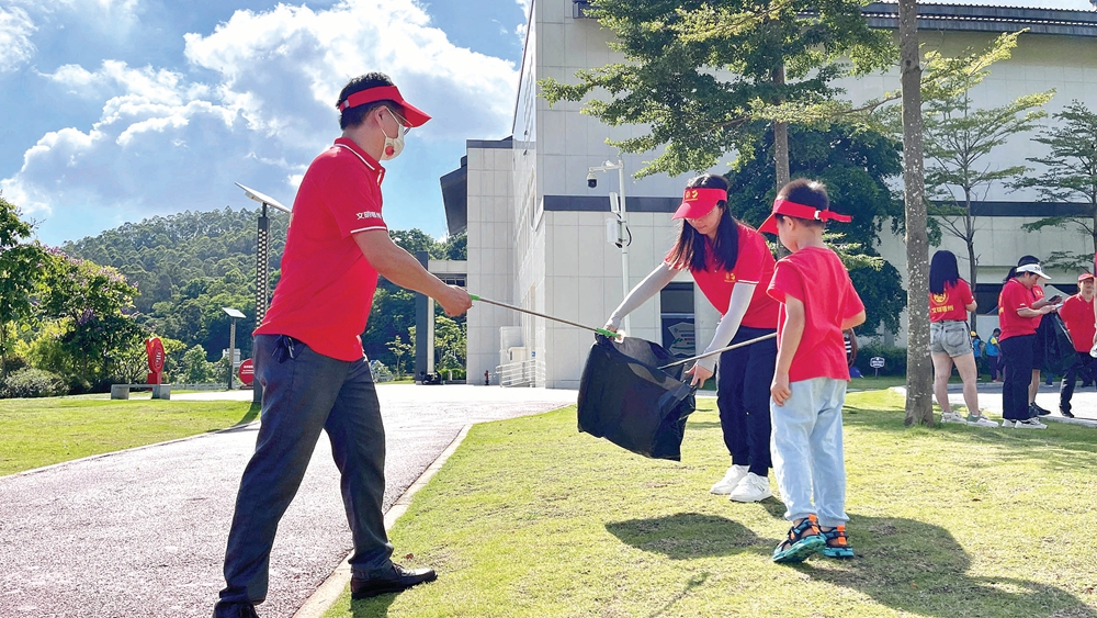 惠州日?qǐng)?bào)社機(jī)關(guān)第一黨支部的志愿者們發(fā)揚(yáng)不怕苦、不怕累、不怕臟的精神,撿拾草坪和小道上的廢棄物、紙屑、果皮、食品袋等垃圾,大家撿拾得非常認(rèn)真,不放過任何一處死角。