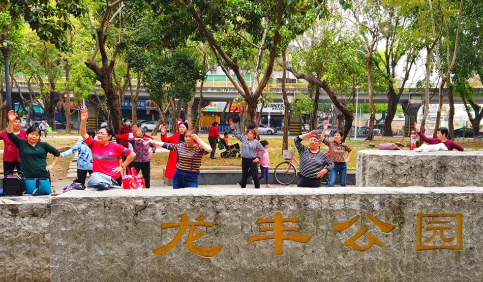 巿民在龍豐公園跳起廣場(chǎng)舞。