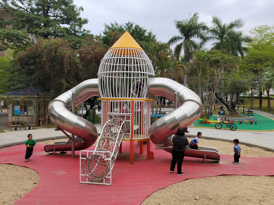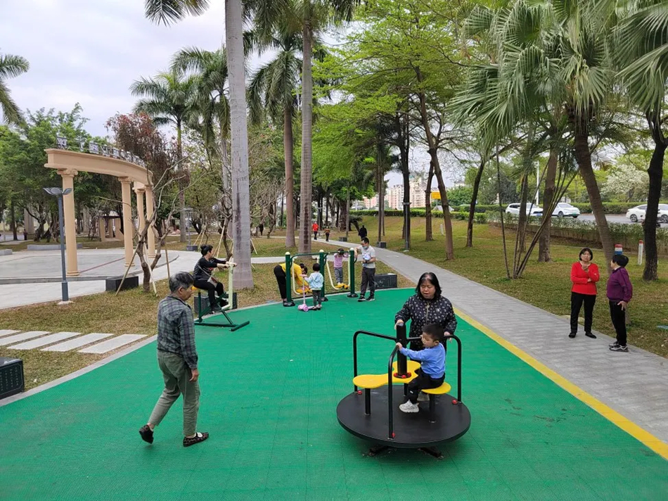 荷香園的兒童游樂(lè)區(qū),家長(zhǎng)帶著孩童嬉戲玩耍。