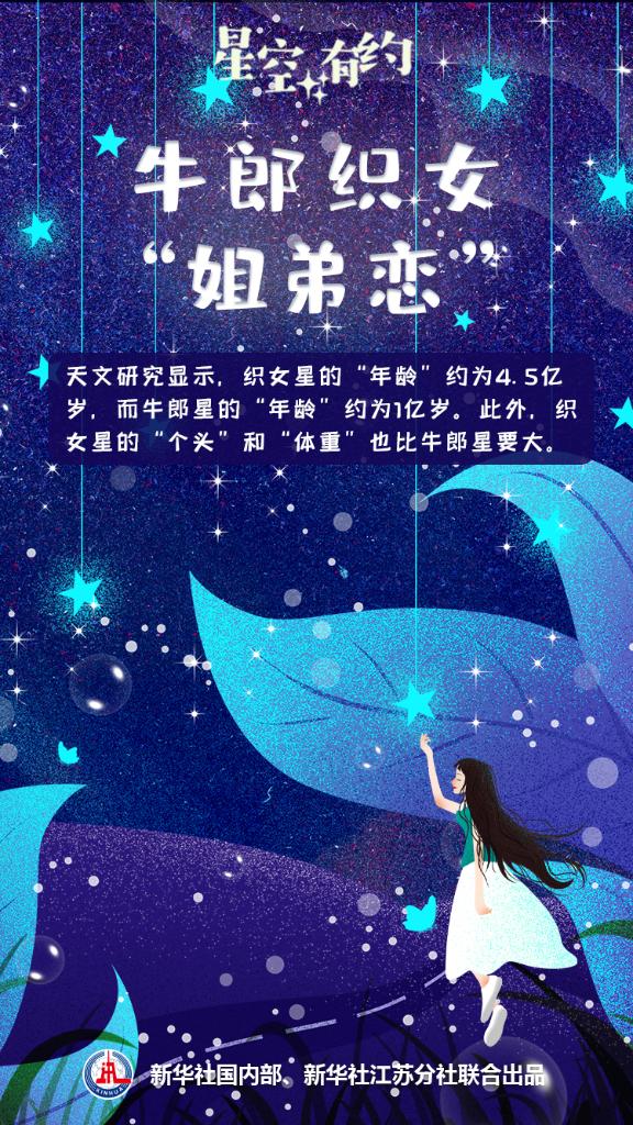 天文研究顯示,牛郎星與織女星不僅是“異地戀”,還是“姐弟戀”。王科超介紹,織女星的“年齡”約為4.5億歲,而牛郎星的“年齡”約為1億歲。織女星的“個頭”和“體重”也比牛郎星要大。織女星的質(zhì)量約為太陽的2.1倍,赤道直徑約為太陽的2.8倍;牛郎星的質(zhì)量約為太陽的1.7倍,赤道直徑約為太陽的1.8倍。因為自轉(zhuǎn)速度極快,織女星和牛郎星都把自己“甩”成了橢球狀。