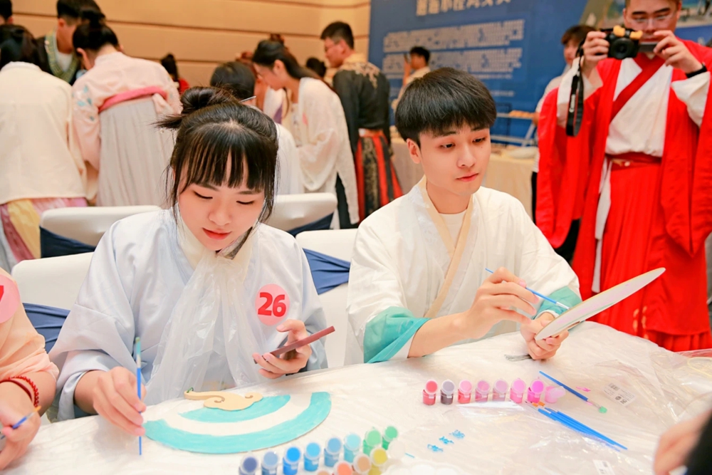 活動(dòng)開(kāi)始前,80名青年男女分成了8個(gè)組,每個(gè)組起了專(zhuān)屬組名并選舉出了組長(zhǎng),隨后,活動(dòng)正式拉開(kāi)序幕!按蠹襾(lái)認(rèn)真聽(tīng),這首是什么歌曲?”“西樓別序!”“蘭亭集序!”活動(dòng)伊始,在工作人員的組織下,青年們?nèi)硇牡貐⑴c到聽(tīng)音識(shí)曲、智慧棋盤(pán)、飛花傳令、邏輯畫(huà)篇等四個(gè)破冰團(tuán)隊(duì)游戲中,逐漸打破了陌生局面,拉近了彼此之間的距離。而后青年男女們自由組合,相互合作,傾情投入到花燈燈謎、投壺乞巧、對(duì)月穿針、射箭乞巧、錘丸乞巧、自制團(tuán)扇、自制月餅等游戲中。青年男女們躍躍欲試,熱情高漲,現(xiàn)場(chǎng)氣氛活潑熱鬧。