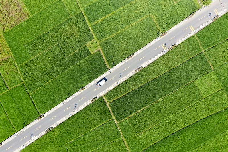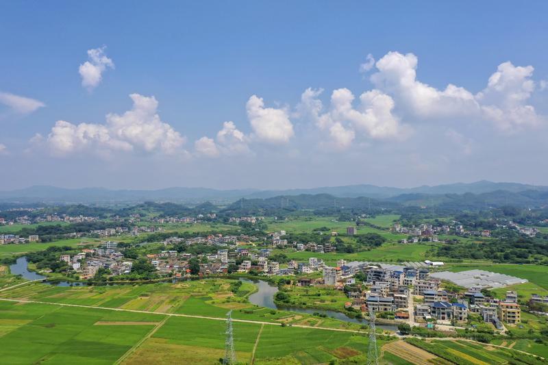 航拍橫瀝鎮(zhèn)墨園村田野。