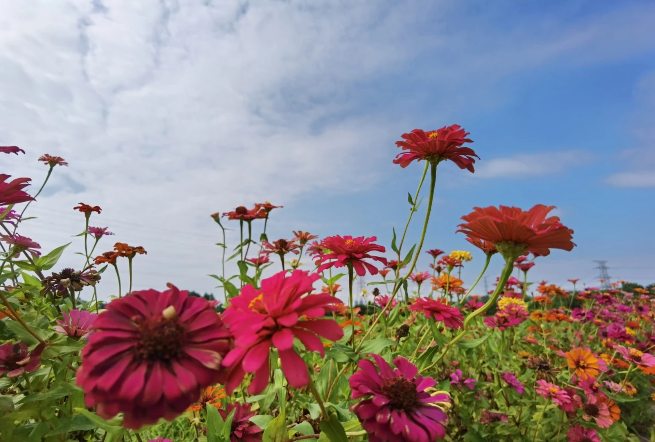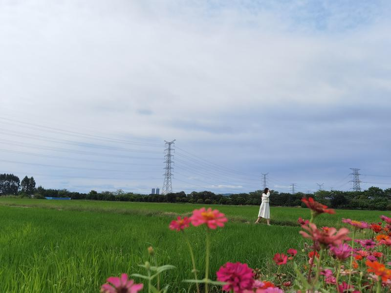 在機耕路兩旁,各色花兒綻放,迎風(fēng)搖曳,不時還有蜜蜂和蝴蝶在花兒周圍追逐,為這幅美麗的自然畫卷增添了絲絲靈氣。