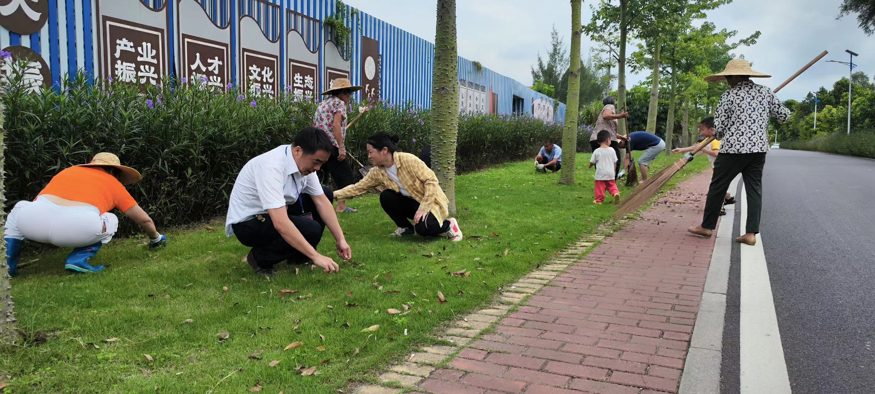 黨員與群眾一起參加義務勞動美化村莊。