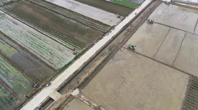近日,在惠東縣鐵涌鎮(zhèn)小屯村,連片的高標(biāo)準(zhǔn)農(nóng)田里,新型農(nóng)機(jī)、水稻穴直播機(jī)、無人機(jī)等輪番上陣。農(nóng)機(jī)手駕駛插秧機(jī)在水田中駛過,健壯的秧苗穩(wěn)穩(wěn)地“蹦進(jìn)”水田里。很快,水田便漾起了“綠”波,春耕播種任務(wù)就此完成。與此同時(shí),無人機(jī)在水田上空來回飛舞,肥料猶如及時(shí)雨般落下。
