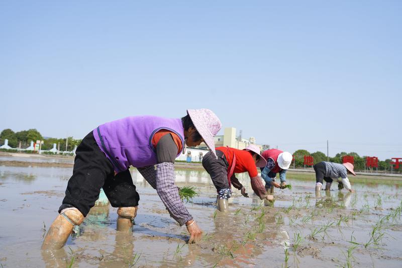農(nóng)民在區(qū)農(nóng)業(yè)農(nóng)村綜合服務(wù)中心試驗田插秧。