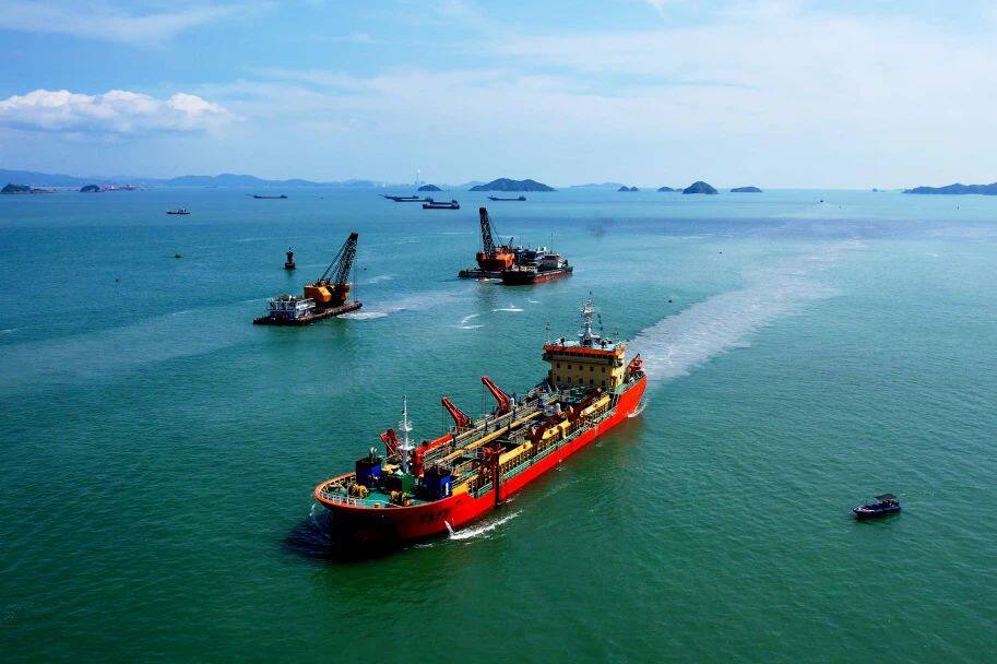 據(jù)介紹,該項目總方量達(dá)2000萬方,項目部累計投入耙吸船、抓斗船、鑿巖船等施工船舶30余艘,作業(yè)高峰期370余人,項目疏浚日產(chǎn)量多次突破20萬方,創(chuàng)造了行業(yè)施工新標(biāo)高。