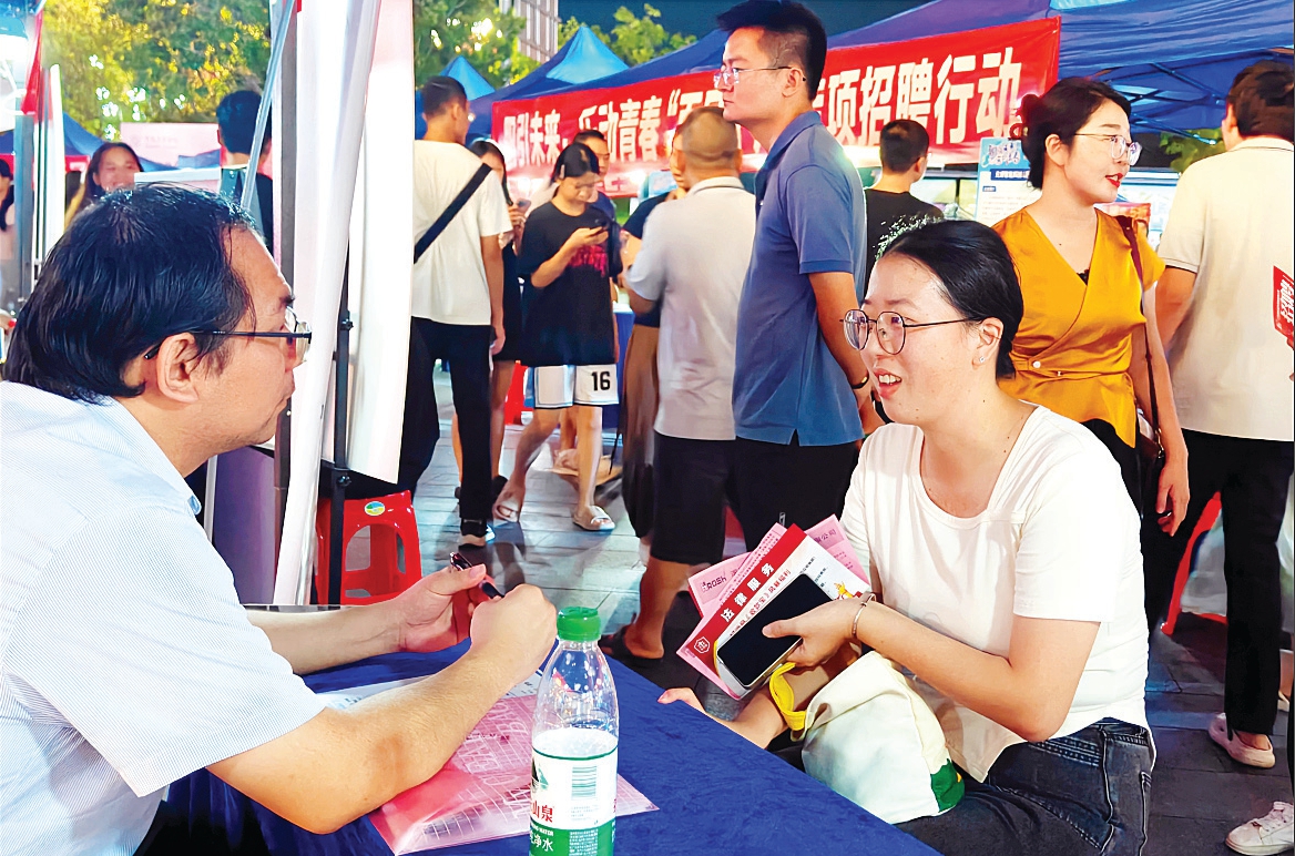 招聘夜市現(xiàn)場(chǎng),不少求職者前來(lái)求職。