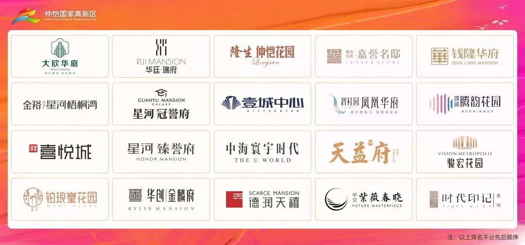 昊翔源壹城中心、天益御府、星河臻譽府、 金裕星河梧桐灣、華廷瑞府、隆生仲愷花園、鴻潤騰韻花園、大欣華庭、禹洲五經(jīng)嘉譽名邸、時代印記、錢隆華府