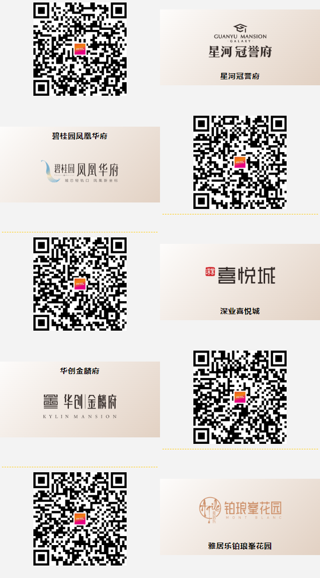 星河冠譽府、碧桂園鳳凰華府、深業(yè)喜悅城、華創(chuàng)金麟府、雅居樂鉑瑯峯花園