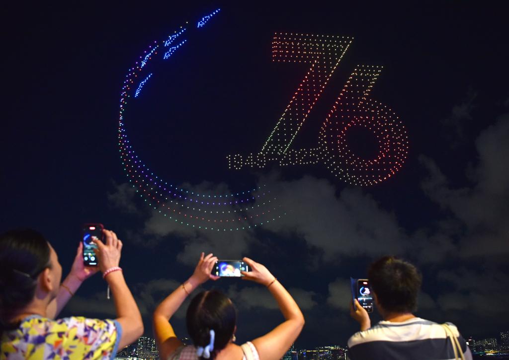 10月2日,香港舉行大型無人機(jī)匯演,慶祝中華人民共和國(guó)成立76周年。新華社記者 陳鐸 攝