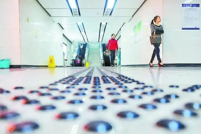 在地鐵站,有盲文地圖及語音播放系統(tǒng),志愿者也熱心幫忙;