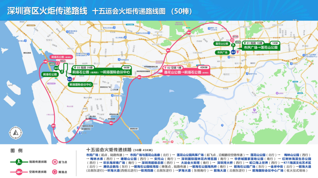 火炬?zhèn)鬟f從蓮花山公園出發(fā),45公里路線串聯(lián)起“改革”“開放”“創(chuàng)新”三個(gè)篇章,每一步傳遞都講述著深圳從“敢為人先”到“先行示范”的進(jìn)階故事。