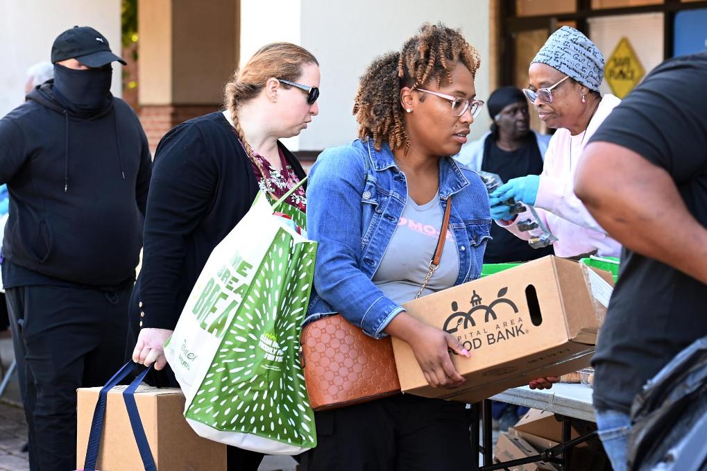10月21日,在美國馬里蘭州海厄茨維爾市,聯(lián)邦雇員領(lǐng)取免費食品。新華社記者李睿攝