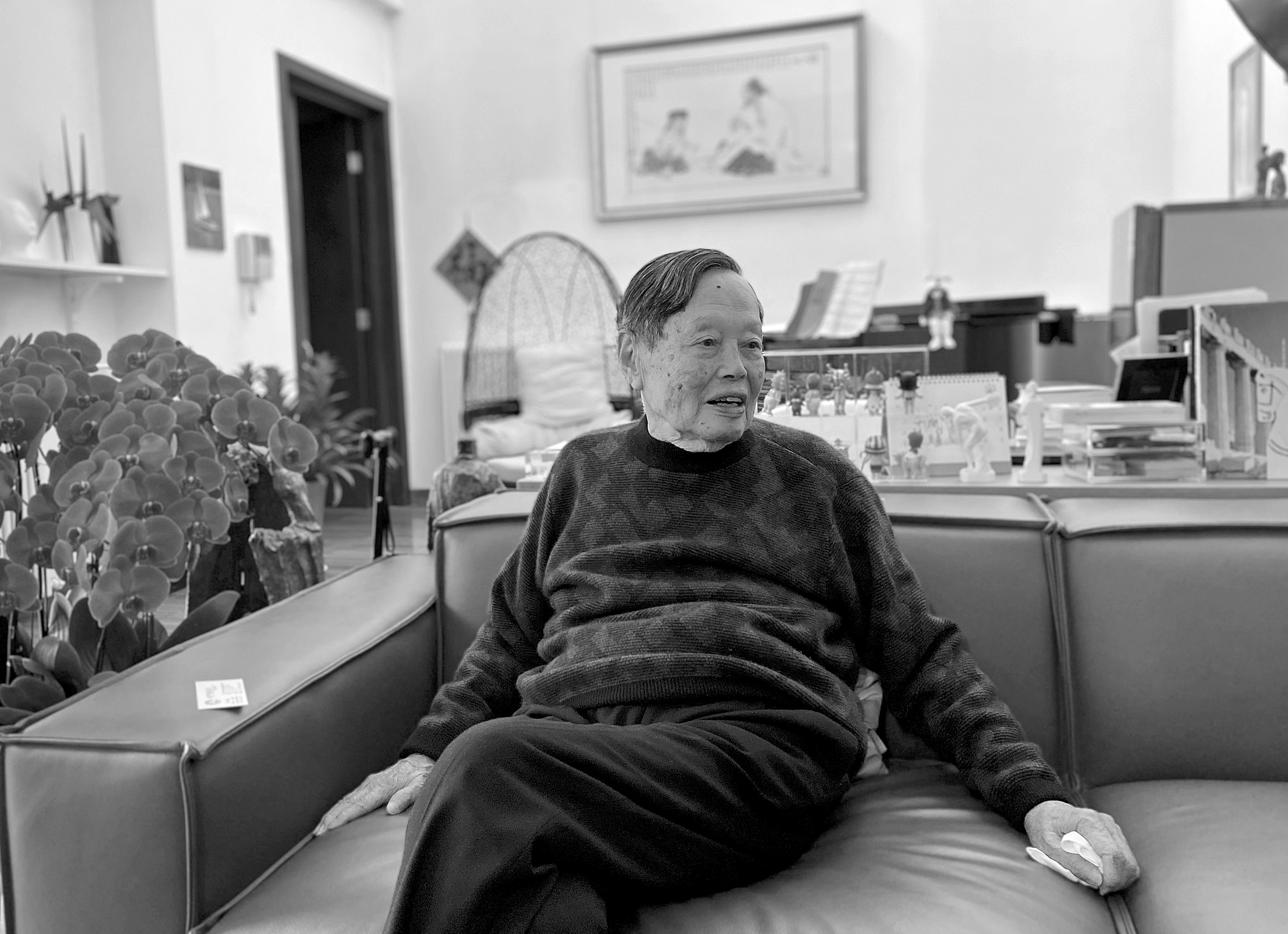 2021年4月,楊振寧在清華大學(xué)的住所接受新華社記者采訪。