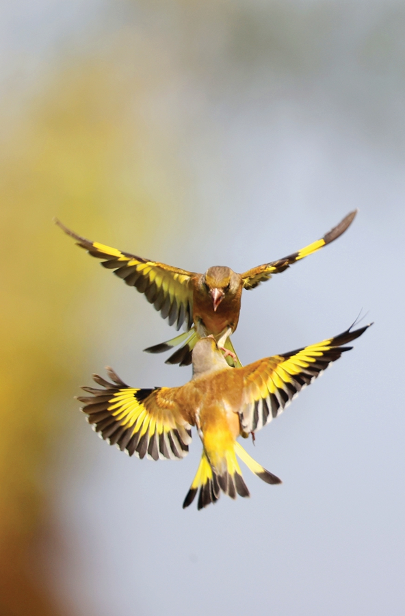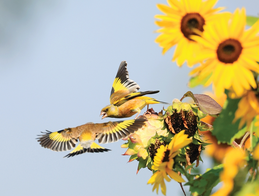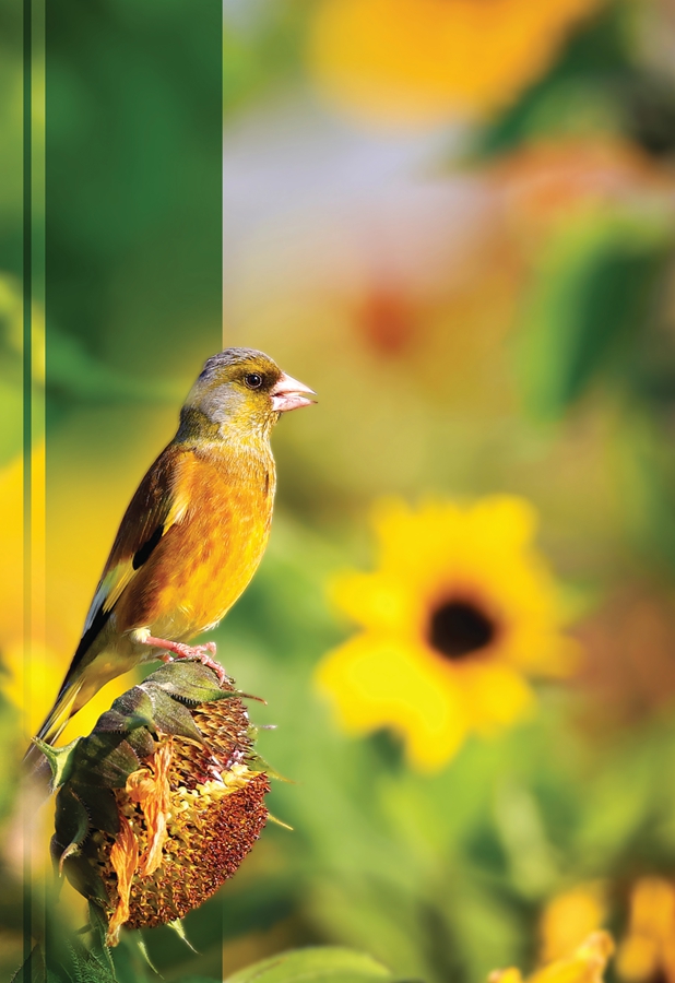 站在葵花上的金翅雀熟練準(zhǔn)確地啄下葵花籽,用特有的喙輕松剝?nèi)ネ鈿,吃下雪白的瓜子仁,整個(gè)動(dòng)作一氣呵成,非?蓯邸=鸪崛革w舞時(shí),展開的黃色翅膀非常耀眼,與葵花的黃色交相輝映,繪就一幅幅完美的畫作,更讓葵園充滿了勃勃生機(jī)。