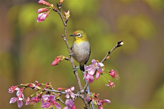 桃花與鳥 吳偉榮 攝