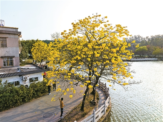 菱湖邊上的黃花風(fēng)鈴木進(jìn)入最佳觀賞期 林志華 攝