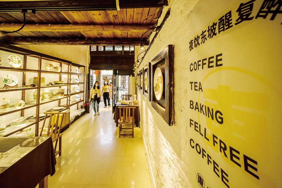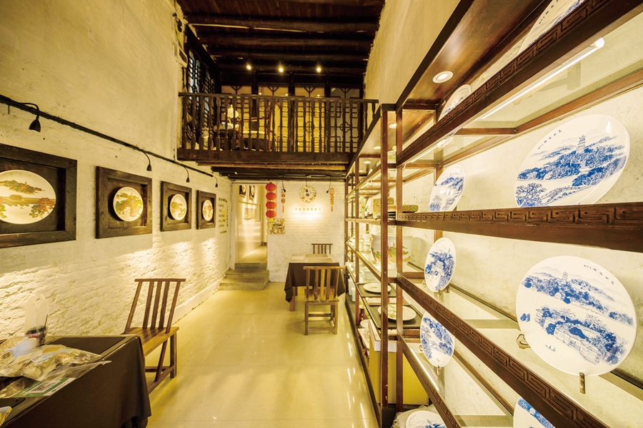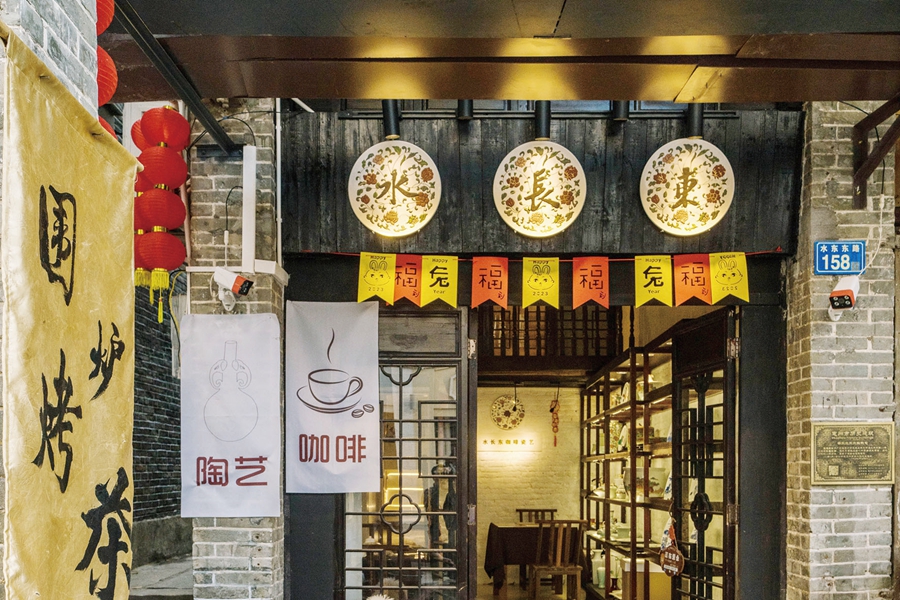 水長東咖啡瓷藝館內(nèi)是“竹筒屋”形制,別有洞天。