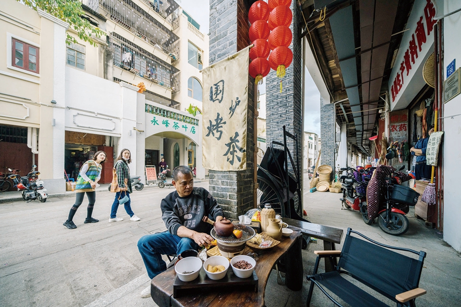 越來越多的游客和本地市民走進(jìn)水東街,來到陳智揚(yáng)的店里參觀、消費(fèi)。每一次,陳智揚(yáng)和妻子都熱情地招呼著客人?腿瞬欢鄷r(shí),他們便與朋友繪彩瓷、品茶聊天,生活與生意,融為一體。