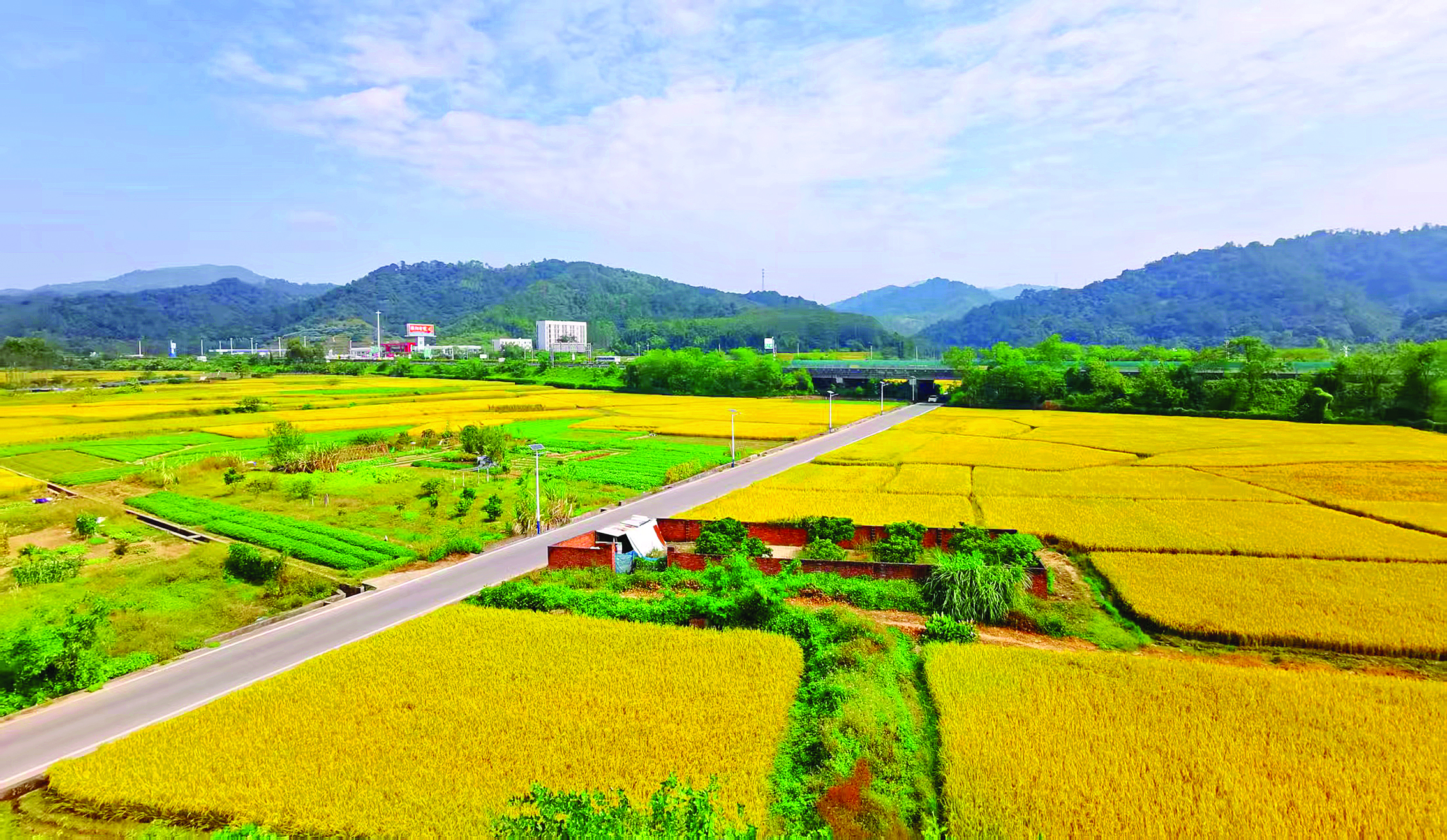 惠州龍門縣龍城街道江廈村的田野間,稻浪如金綢般鋪展。