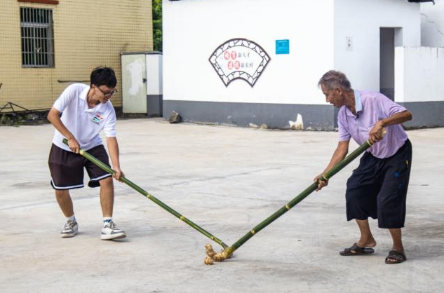 然而,隨著時(shí)代變遷,娛樂(lè)方式逐漸豐富,年輕一代對(duì)打橢的認(rèn)知日益淡薄。為搶救與活化打橢文化,2024年,當(dāng)?shù)靥貏e邀請(qǐng)廣東科技學(xué)院“承非遺印記”擊隊(duì),專程前往潼湖赤崗村開(kāi)展“三下鄉(xiāng)”實(shí)踐工作。突擊隊(duì)通過(guò)實(shí)地調(diào)研村落風(fēng)貌、走訪熟悉打橢歷史的老人、收集散落的史料文獻(xiàn)等方式,系統(tǒng)梳理出打橢的文化起源、發(fā)展脈絡(luò)與器具制作技藝細(xì)節(jié),不僅為這項(xiàng)傳統(tǒng)游藝留存了珍貴資料,更通過(guò)后續(xù)宣傳進(jìn)一步弘揚(yáng)其強(qiáng)身健體、聯(lián)結(jié)鄰里的獨(dú)特價(jià)值,讓打橢背后的文化內(nèi)涵被更多人知曉。