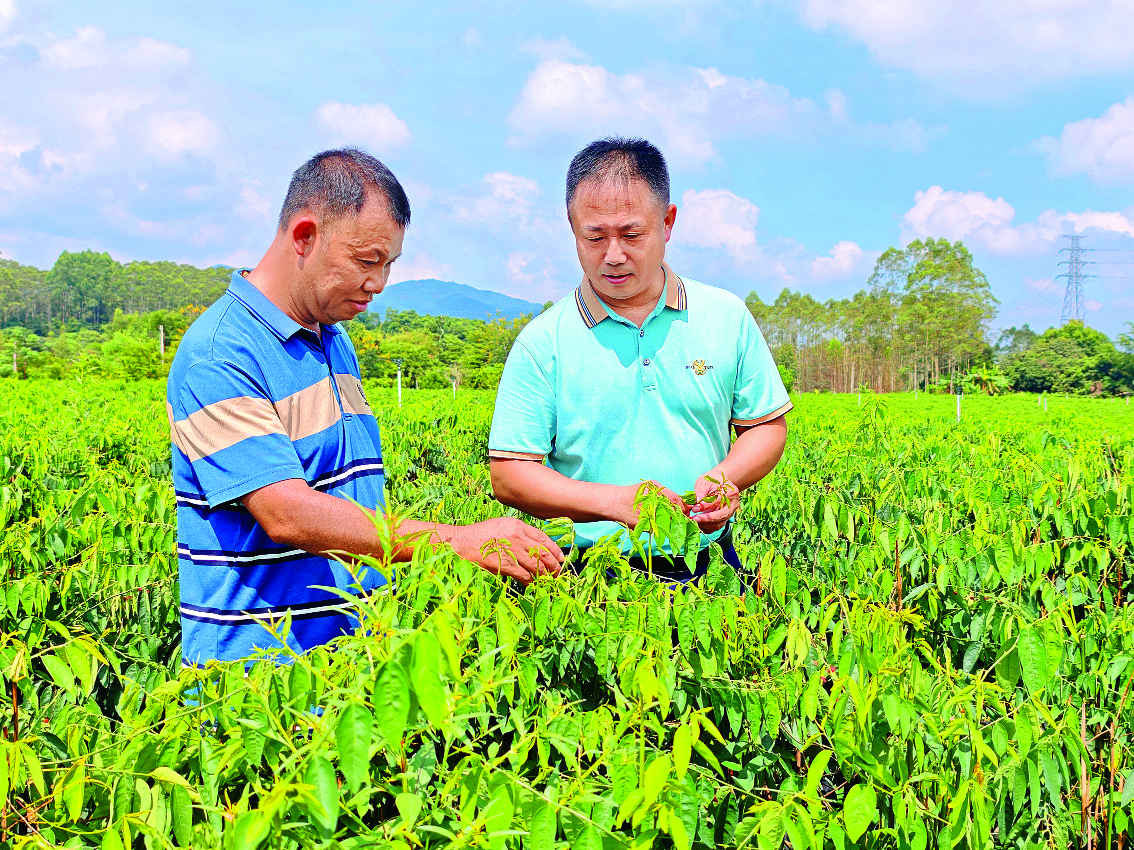 2024年初,一次外地調(diào)研讓他與“樹仔菜”結(jié)緣。樹仔菜也叫天綠香、五指山野菜等,是一種常綠灌木,以嫩梢為食用部位,故得名。近年來,樹仔菜成為珠三角餐飲市場的“寵兒”,不僅價格堅挺、需求旺盛,而且生長快、產(chǎn)量穩(wěn),更與新塘村的土壤氣候高度契合。“這不就是為新塘村量身定制的‘致富菜’!”鐘建周眼前一亮。