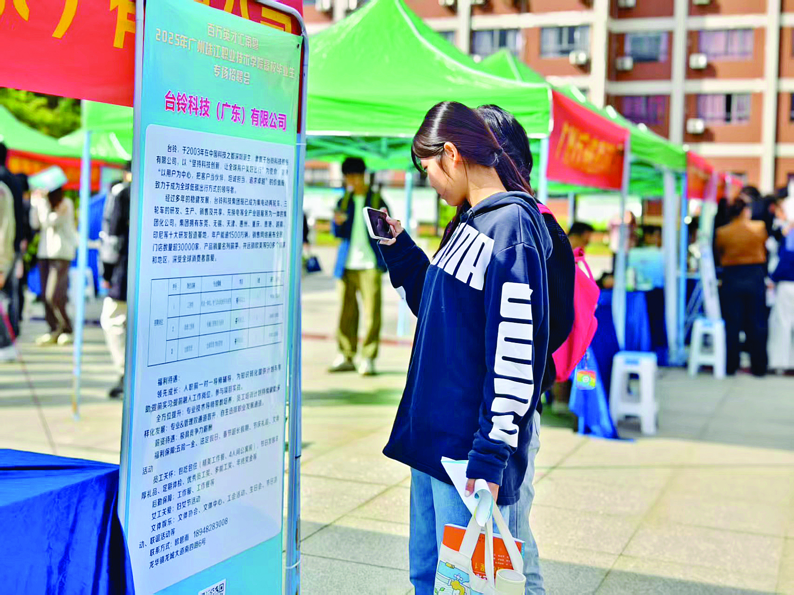 招聘會現(xiàn)場一派火熱景象,各家企業(yè)的展板清晰標(biāo)注崗位需求、任職要求與薪資福利等信息。明年將畢業(yè)的大學(xué)生王佐耀在多個企業(yè)展位間對比崗位,“不用出校門,就能參加匯集這么多企業(yè)的招聘會,非常方便!面對面交流能更清楚了解企業(yè)情況,崗位選擇多,也比較靠譜!迸_鈴科技(廣東)有限公司招聘主管歐碧雨介紹,該公司急需機(jī)電一體化等方面的人才,已與多個求職者達(dá)成初步意向:“專業(yè)匹配度和學(xué)生綜合素質(zhì)都符合預(yù)期!