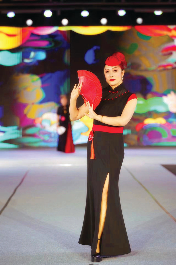 今年5月,黃麗得知2023第三屆深圳(國際)華服大賽開始報名,抱著試一試、玩一玩的心態(tài),她報了名。比賽當天,前來參賽的選手年齡在18歲至70歲之間!拔襾磉@里的目的是見證自己的能力,看看自己學習了那么久,水平在哪里。”第一次站在臺上比賽,黃麗氣質(zhì)優(yōu)雅、瀟灑自信、從容自若。相比于年紀輕的選手,51歲的黃麗多了一份歲月沉淀的美。