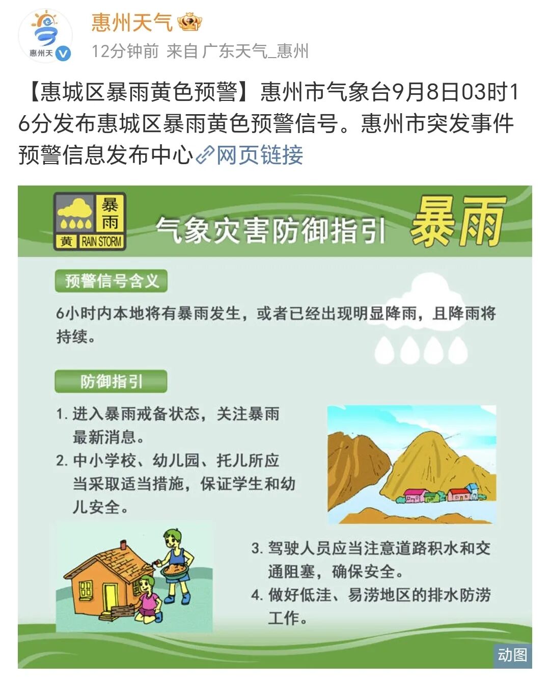惠城區(qū)暴雨黃色預(yù)警信號(hào),