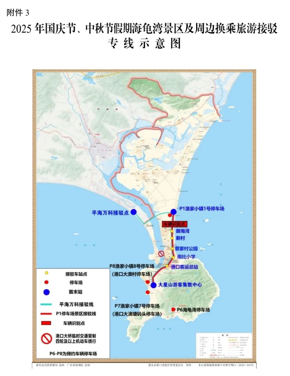 。ǘ╊A(yù)約停車服務(wù)。實(shí)施優(yōu)化交通管理期間,進(jìn)入管理區(qū)域的7座及以下機(jī)動(dòng)車,通過“惠州海龜灣”訂閱號預(yù)約3個(gè)收費(fèi)停車場,分別為海龜灣停車場和漁家小鎮(zhèn)7號、8號停車場。
