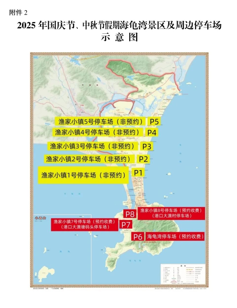 。ㄒ唬┟赓M(fèi)停車服務(wù)。實(shí)施優(yōu)化交通管理期間,管理區(qū)域及周邊共有5個(gè)停車場提供免費(fèi)停車服務(wù),分別為漁家小鎮(zhèn)1號、2號、3號、4號、5號停車場。