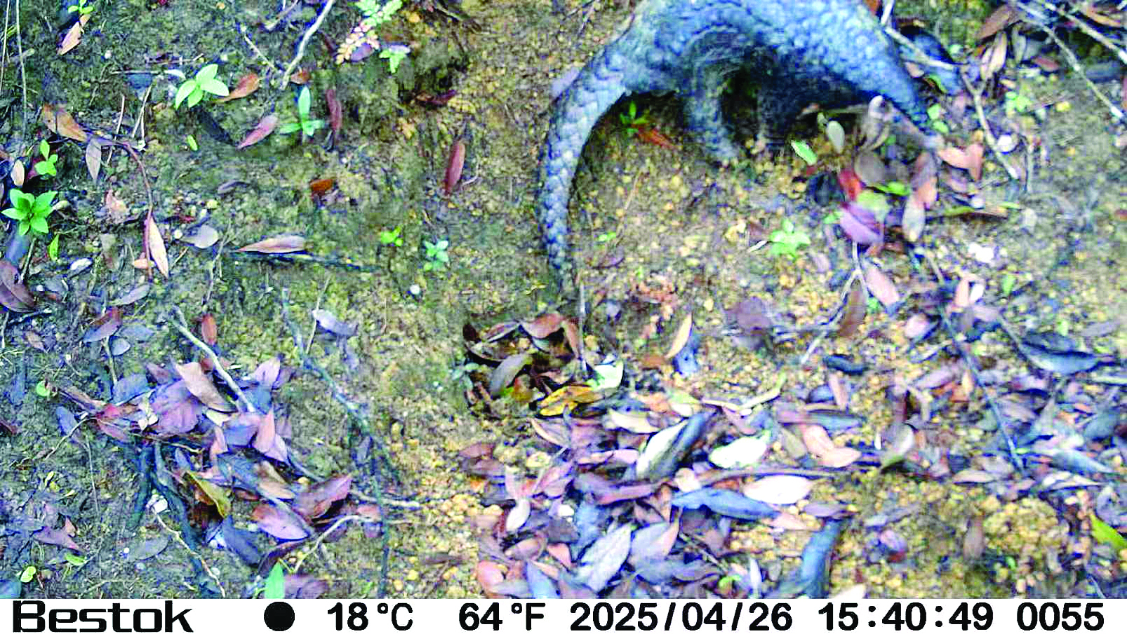 野外紅外相機拍攝到的中華穿山甲活動畫面。