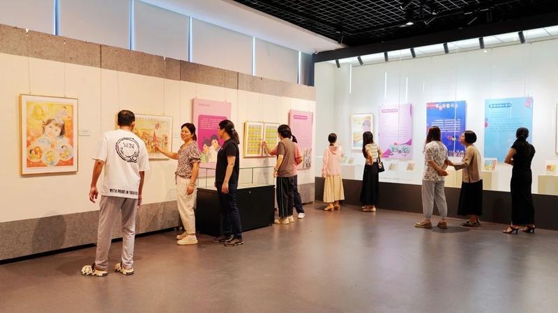 記者在展廳現(xiàn)場(chǎng)看到,不少市民駐足展柜前,端詳一件件承載著童年回憶的展品。從生動(dòng)的連環(huán)畫(huà)小人書(shū)到泛黃的兒童文學(xué)讀物,從充滿童趣的手繪漫畫(huà)到經(jīng)典的海報(bào),每一件作品都仿佛打開(kāi)了時(shí)光的閘門(mén),讓不同年齡段的觀眾都能從中找到屬于自己的童年印記。