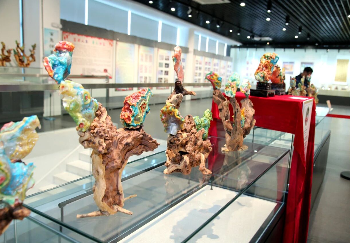 最為熱鬧的當(dāng)屬奇石藝術(shù)作品展區(qū)。兩百多件千姿百態(tài)的奇石錯(cuò)落陳列,令人嘆為觀止。觀眾們穿梭其間,不時(shí)發(fā)出陣陣驚呼。他們有的在形似峻嶺的巨石前感慨自然造物之神奇;有的則圍聚在紋路酷似山水畫(huà)卷的雅石旁,品評(píng)其韻味。