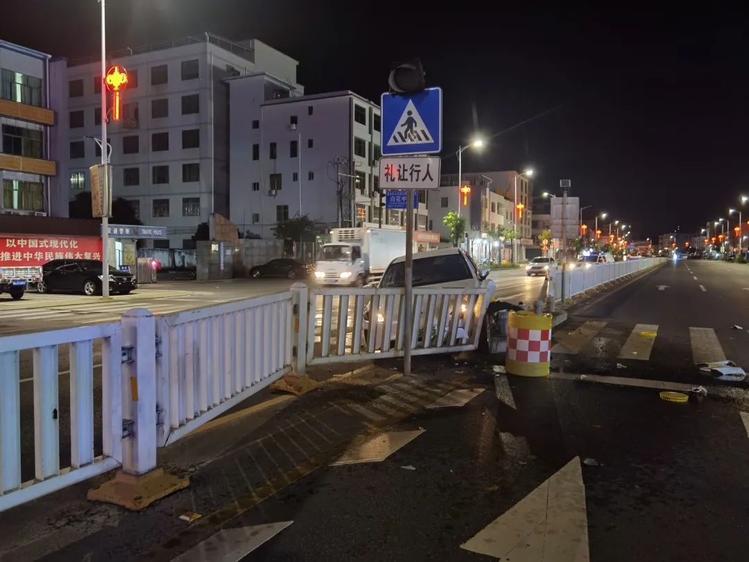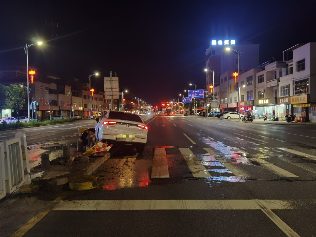 6月12日1時許,夜深人靜;輺|縣公安局交警大隊白花中隊門外馬路上突然傳來“嘭”的一聲巨響,執(zhí)勤民警循聲外出,看見一部小車撞到了道路中間隔離護欄。