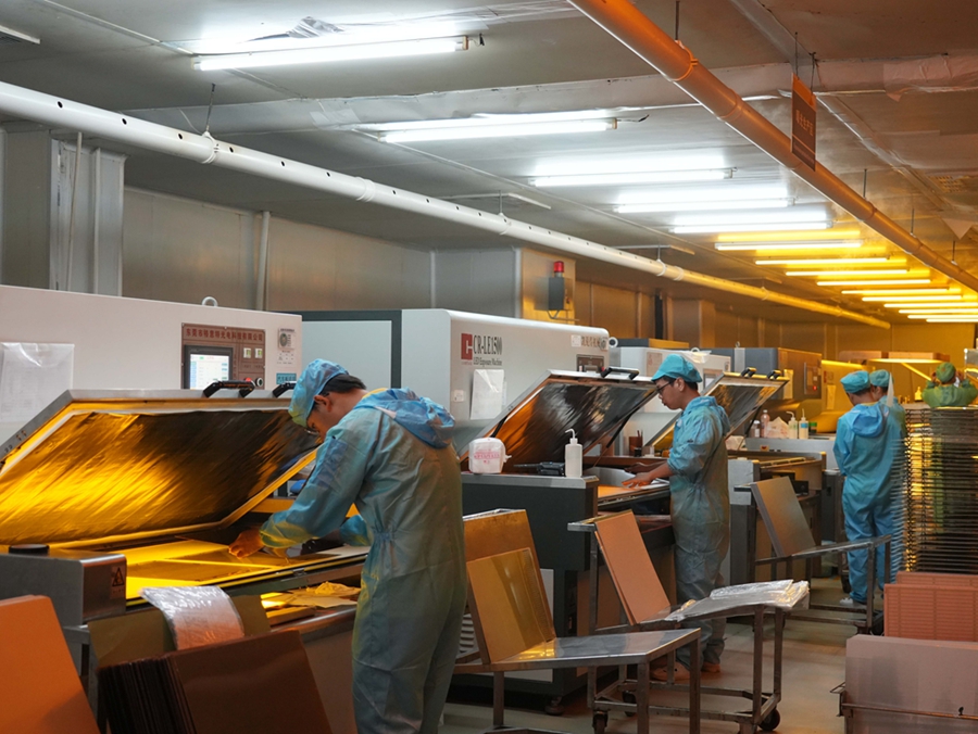 在位于仲愷高新區(qū)的潼僑工業(yè)基地內(nèi),即便是潮濕悶熱的雷雨天氣,盈帆實業(yè)寬敞明亮的無塵車間仍然保持干燥涼爽。智能化大設(shè)備取代了人工流水線,上千平方米生產(chǎn)室內(nèi)僅有6位年輕的操作員,一塊塊PCB在封閉的機器里規(guī)則地“穿梭”,一道道復雜的“紋路”相繼顯現(xiàn)。
