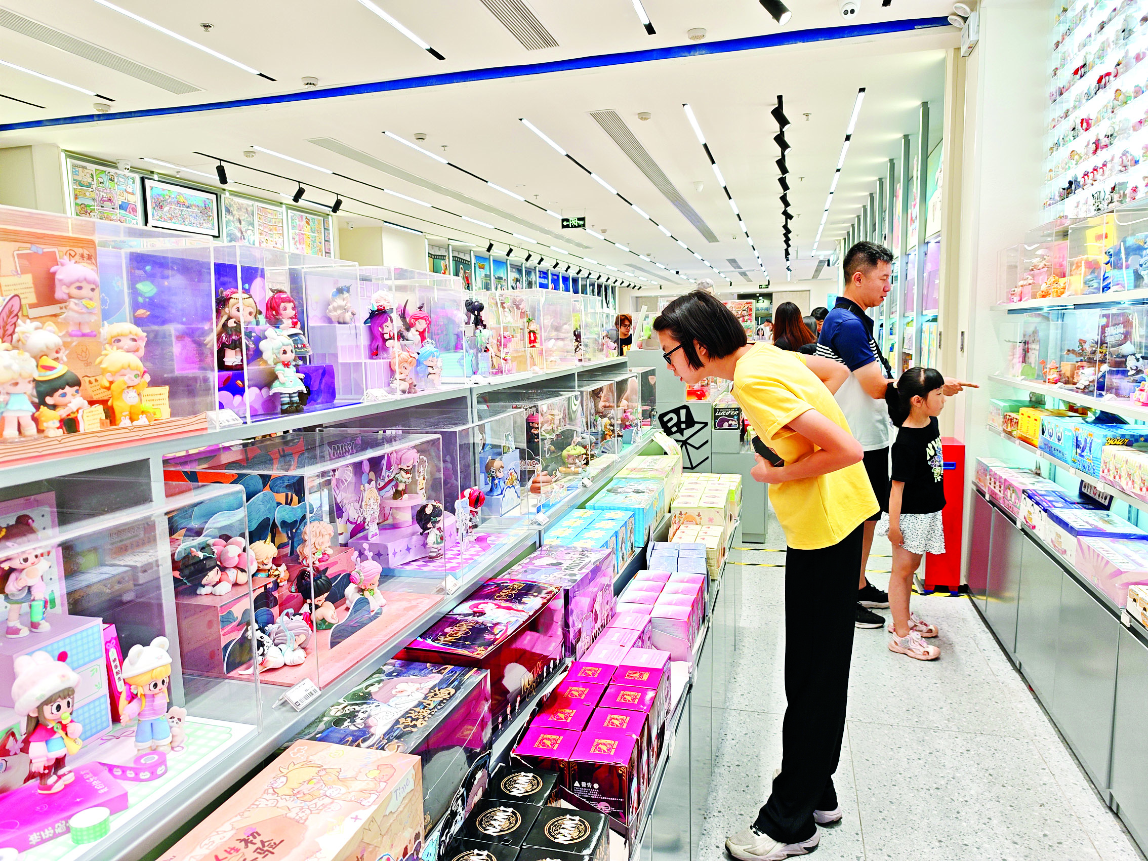 在市區(qū)華貿(mào)天地和港惠新天地等大型商業(yè)綜合體,總能不經(jīng)意遇到“谷子店”!肮茸印,即英文“Goods”(商品)的諧音,是對(duì)漫畫(huà)、動(dòng)漫、游戲等版權(quán)作品衍生出的一切周邊產(chǎn)品的統(tǒng)稱(chēng)。這些“谷子店”的外觀設(shè)計(jì)充滿了動(dòng)漫元素,店內(nèi)則擺滿了各種IP玩偶、小掛飾、手辦、卡牌、徽章等產(chǎn)品,吸引著眾多年輕人來(lái)“吃谷”。