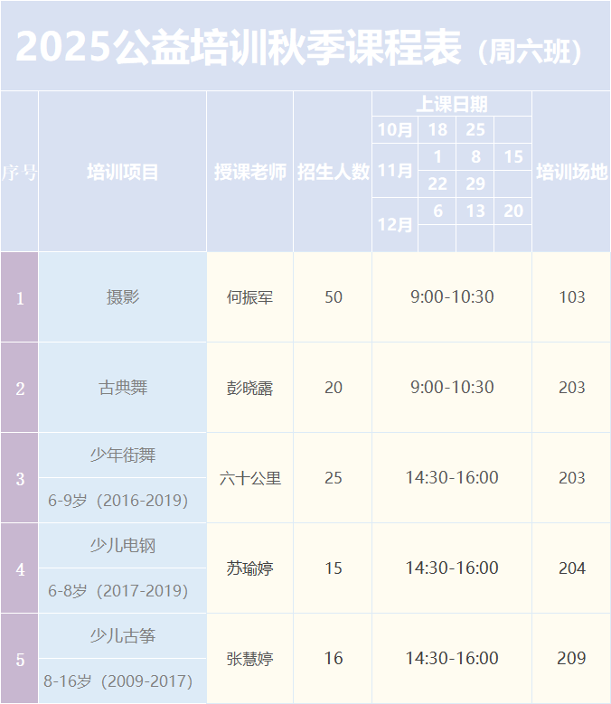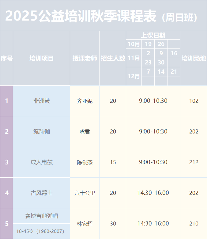 此次培訓(xùn)班課程設(shè)置多樣,既有適合青少年學(xué)習(xí)的少兒街舞、古箏等,也有面向成人的攝影、吉他彈唱等藝術(shù)課程,滿足不同年齡段市民的文化需求。所有課程均免費開放,但名額有限,采取線上報名、后臺隨機(jī)抽簽的方式錄取。中簽者將收到短信及“文惠圈”站內(nèi)信通知,并于9月20日至21日(10:00-16:00)前往惠州市文化館辦理入學(xué)登記。