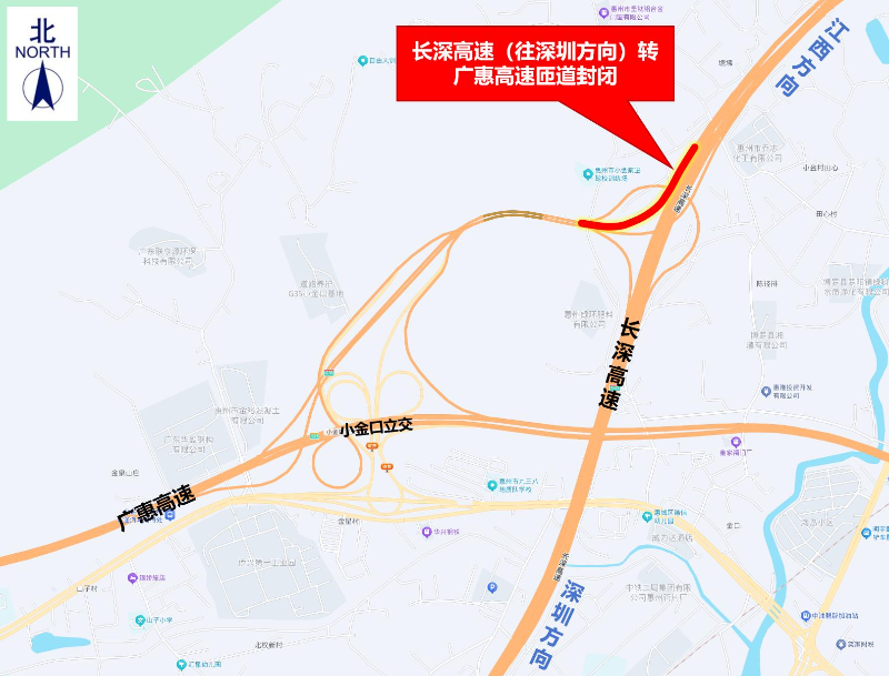 因長深高速河源熱水至惠州平南段改擴建工程施工需要,惠州交警將對長深高速深圳方向小金口立交轉廣惠高速匝道、江西方向石壩北樞紐轉廣河高速匝道及石壩收費站出口、深圳方向四角樓收費站入口實施臨時交通管制。