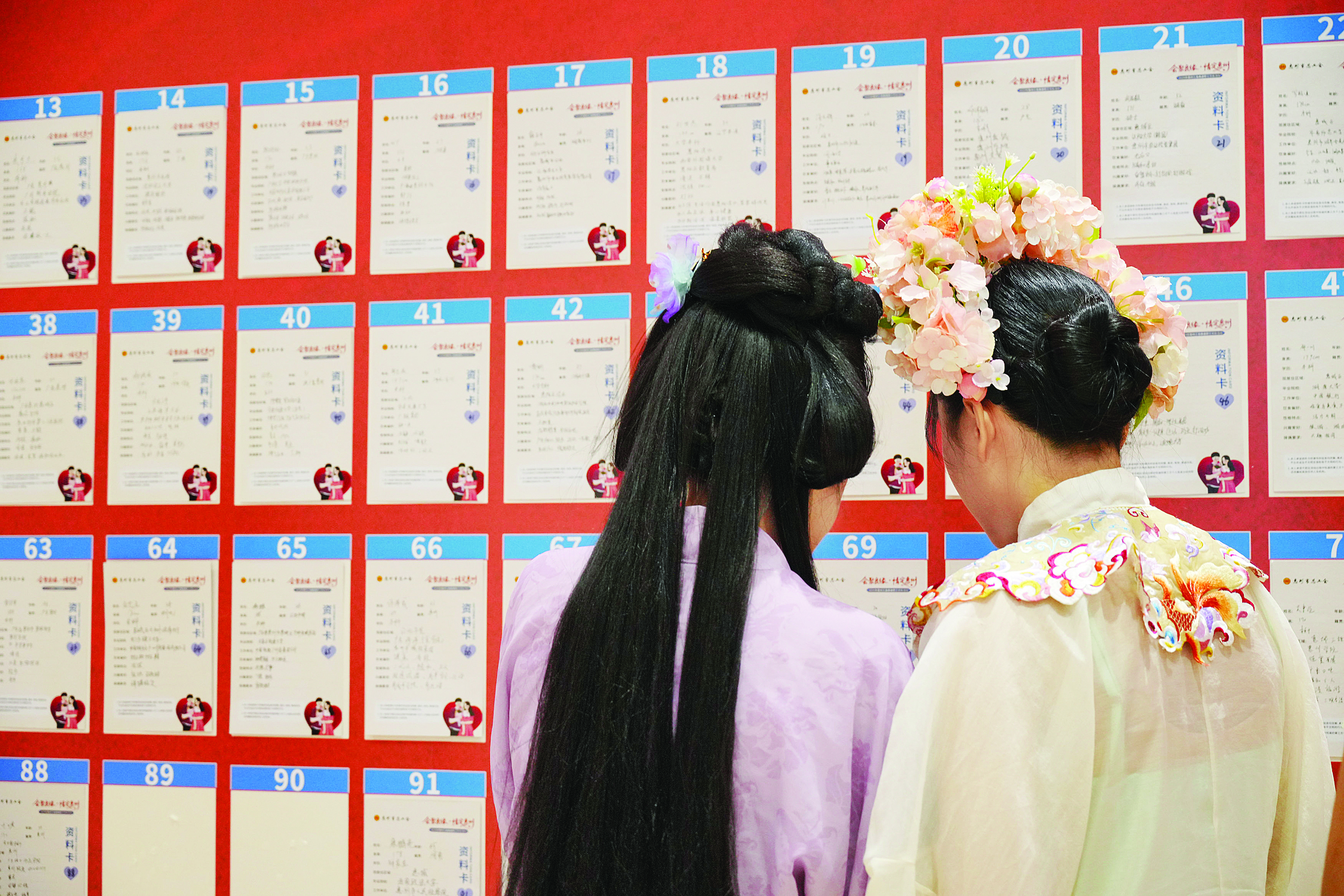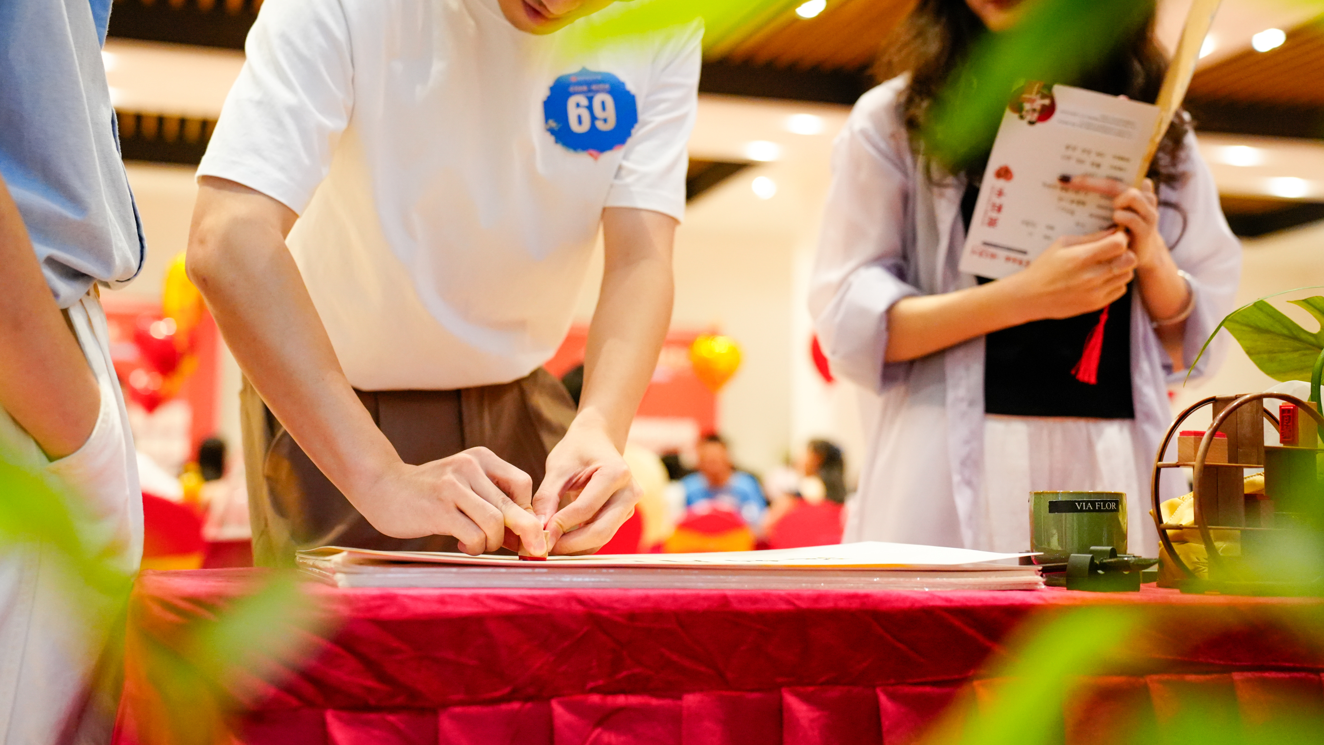 此外,現(xiàn)場(chǎng)還特別設(shè)置了漢服體驗(yàn)角,整齊陳列著素雅襦裙、大氣曲裾、靈動(dòng)褙子等各式漢服,以及發(fā)簪、步搖、團(tuán)扇、折扇等精致配飾。專業(yè)造型師還會(huì)根據(jù)嘉賓喜好幫他們梳好發(fā)髻、調(diào)整妝容。不少男女嘉賓駐足體驗(yàn),沉浸式感受傳統(tǒng)服飾之美,傳統(tǒng)文化的雅致與青年間的鮮活互動(dòng)交織,讓初識(shí)的氛圍更顯溫馨浪漫。