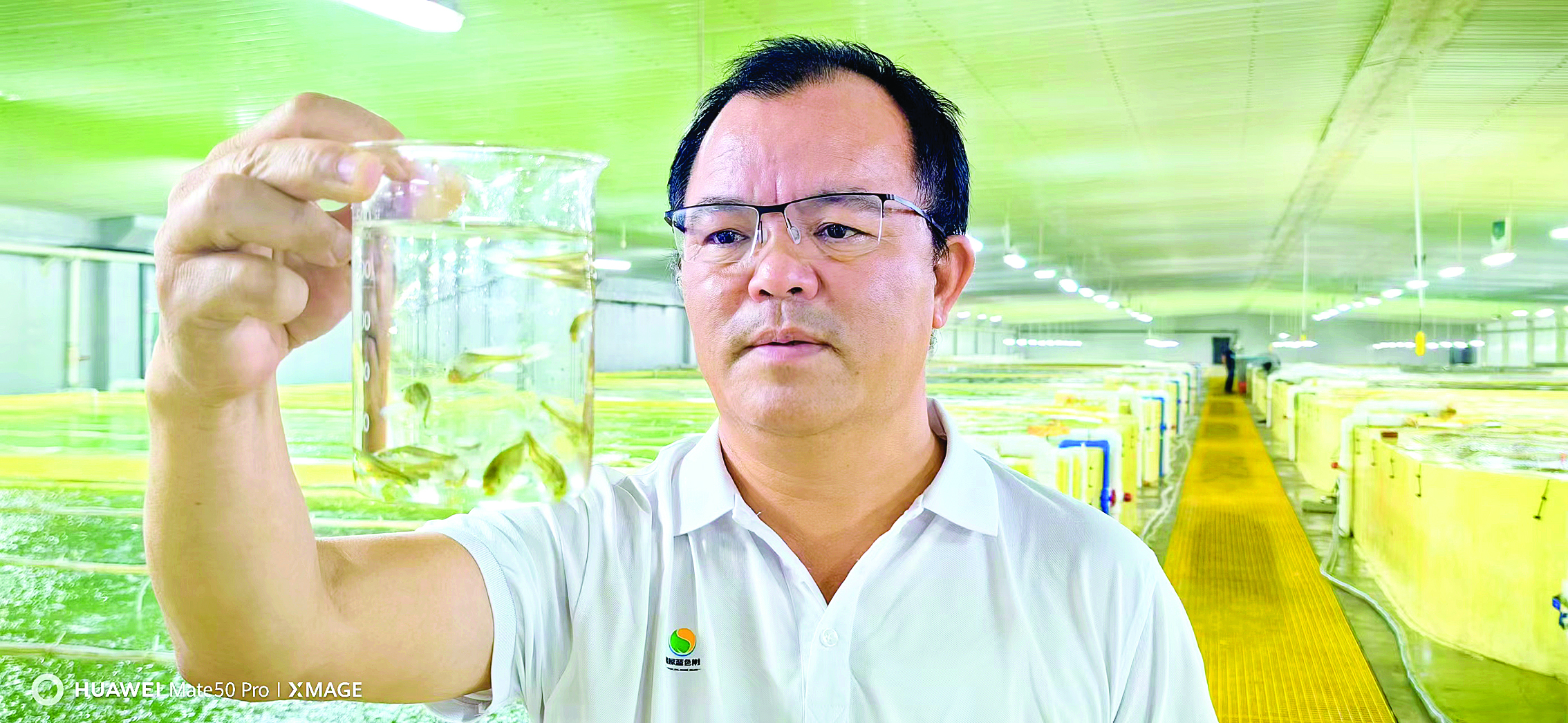 當(dāng)年在惠東意外獲得野生原種黃唇魚后,顏闊秋開始了系統(tǒng)性研究,在省、市、縣農(nóng)業(yè)農(nóng)村主管部門的幫助下,鰉鯨公司技術(shù)團(tuán)隊自主研發(fā)了誘導(dǎo)黃唇魚性成熟的親魚生殖調(diào)控培育系統(tǒng),并獲得2項國家發(fā)明專利。