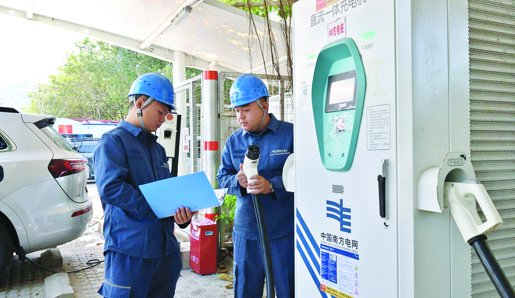 惠東供電局巽寮供電所運(yùn)維人員對景區(qū)充電樁開展用電檢查。 惠州供電局提供