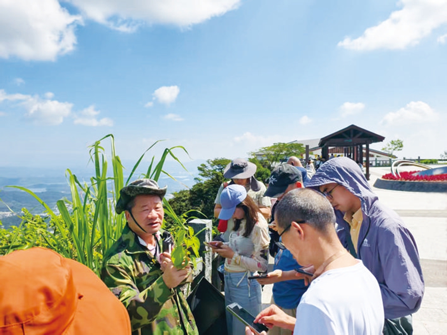 “這株是雞蛋花,是五花茶原料之一,作為外來物種傳入不足500年;那株是鐵冬青,公樹有花無果,母樹花果皆有,全身都是寶……”循著周天來的指引,導游們穿梭在羅浮山的綠意之中,開啟了一堂生動的“行走的本草課”。課堂上,周天來從植物形態(tài)辨識入手,深入淺出地講解各類藥材的四氣五味、炮制方法與藥用價值,更穿插著羅浮山“洞天藥市”的歷史傳說與民間用藥故事。導游們時而俯身觀察,時而認真記錄,在觸摸草木、聆聽講解的過程中,切實感受到中醫(yī)藥文化的博大精深。