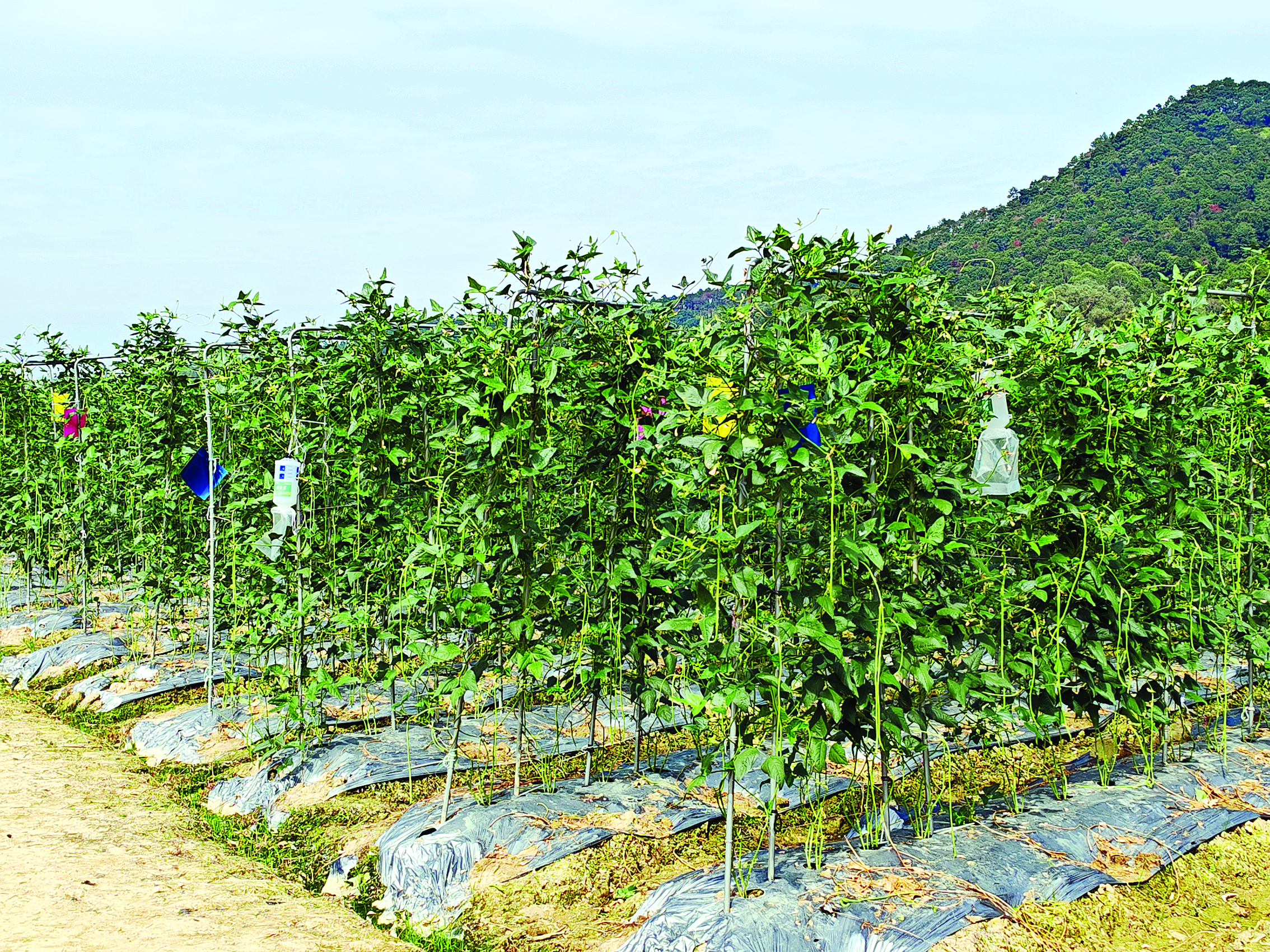時(shí)值深秋,博羅縣泰美鎮(zhèn)連片的豇豆田長(zhǎng)勢(shì)喜人。車村村供銷蔬菜專業(yè)合作社技術(shù)負(fù)責(zé)人郭洪軍站在田埂上,向圍攏過(guò)來(lái)的種植戶們講解道:“薊馬最喜歡藏在花蕊里,以前我們憑經(jīng)驗(yàn)打藥,既費(fèi)錢又容易超標(biāo),現(xiàn)在采用這套綠色防控技術(shù),農(nóng)藥成本降了三成,豇豆還能賣上高價(jià)。”